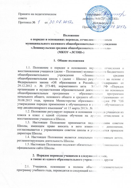 Порядок и основания перевода, отчисления и восстановления обучающихся (воспитанников)
