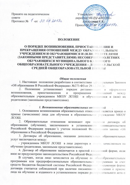 Порядок оформления возникновения, приостановления и прекращения отношений между образовательной организацией и обучающимися (воспитанниками) и (или) родителями (законными представителями) несовершеннолетних