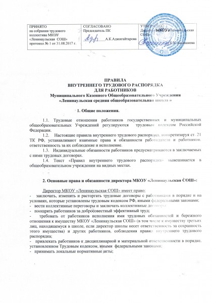 Правила внутреннего распорядка обучающихся (воспитанников)