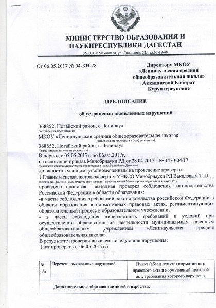 Предписания органов, осуществляющих государственный контроль (надзор) в сфере образования, отчеты об исполнении таких предписаний (при наличии)